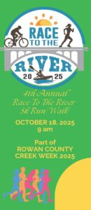 The fourth annual Race to the River 5K will take place on October 18 at 9:00 a.m. In-person registration for the race and the Medicine Take-Back Event will start at 8:00 a.m. The 20-mile Ride to the River will begin at 8:30 a.m., and the 7-mile ride will begin at 8:45 a.m. The finish line will be at the Yadkin River Park Trailhead, where trolleys (sponsored by Novant Health) will be available to bring participants back to the newly completed Spencer Town Park for the Race to the River Festival. The festival will have the Fun Run, food trucks, a bike rodeo, and the award ceremony. Liam Pendergrass will provide live entertainment.