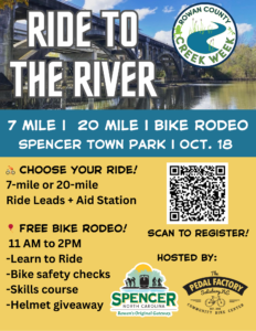SPENCER – Creek Week is a week-long celebration of local waters throughout North Carolina. This year, Rowan Creek Week will take place from October 11 to 18. In conjunction with multiple organizations and local municipal departments, Creek Week provides recreational, educational, and volunteer opportunities to enable everyone to enjoy and contribute to the health of our local waters.